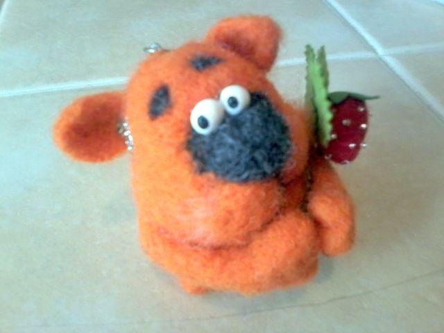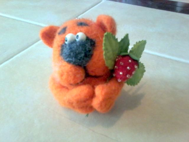 В одной из коробочек оказался... такой мимишный валяный котик-брелочек с клубничкой!!!! Вика тоже завладела им безраздельно!