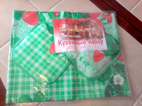 Также на кухне сразу пристроили симпатичный летний наборчик - 2 прихватки и полотенчико!