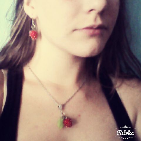 валяные украшения - брошь с клубничками и комплект - сережки и подвеска!!!