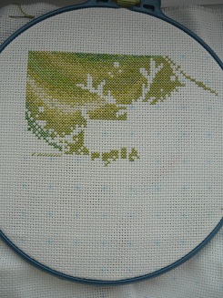 Вчера начала чашку. Хочется за неделю вышить всю рамку. Надеюсь удастся, т.к. еще вяжу носки для Мамы.Всем удачного ВД!