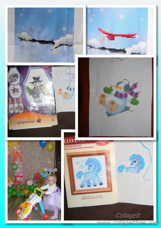Всем привет. Вот мой отчет. В совушке появилась часть шарфика (фото было - стало), подрос снеговик (фото было - стало) и с нуля вышилась половина Ледяной лошадки (фото есть- будет). Как и предполагала вышивала немного - отмечали дочкин первый день рождения (на фото моя красавишна). Вышиваю в тишине, ночью, полулежа рядом со спящей дочей - по другому не дает моя лапочка: только рядом, рядом я сказала