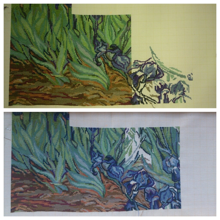 Стало (вышивала только сверху, поэтому с пялец снимать не стала):