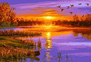 Всем привет! Вчера весь день не могла зайти на ББ, не знаю то ли наш дебильный не очень хороший интернет плохо работал, то ли сайт у нас глючило. Очень извеняюсь. Я без фоток, почти всю неделю проболела. В начале недели довышивала котика для новогодней открытки по ОП. Начала кусочек робина. Будет вот такой Закат. в отшитом виде у меня нет.