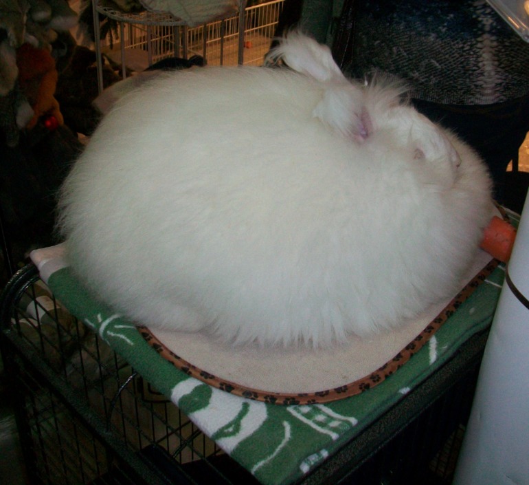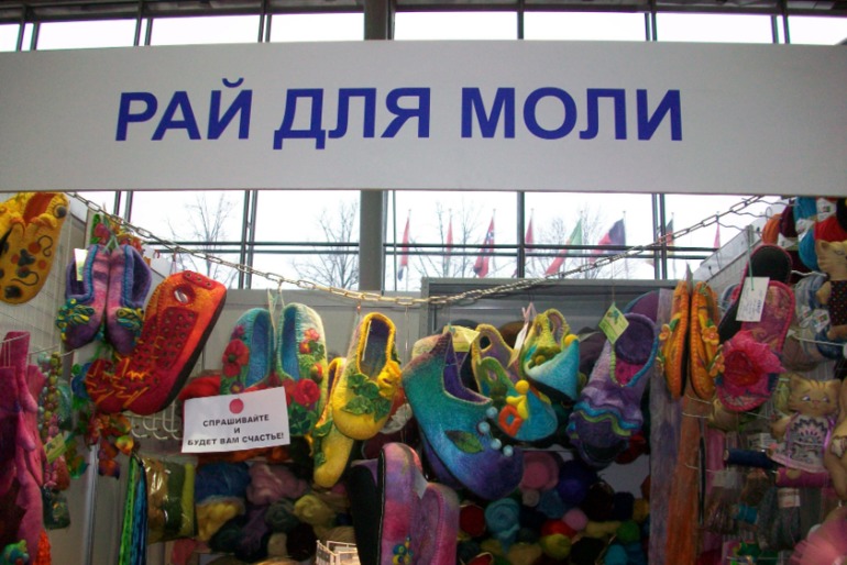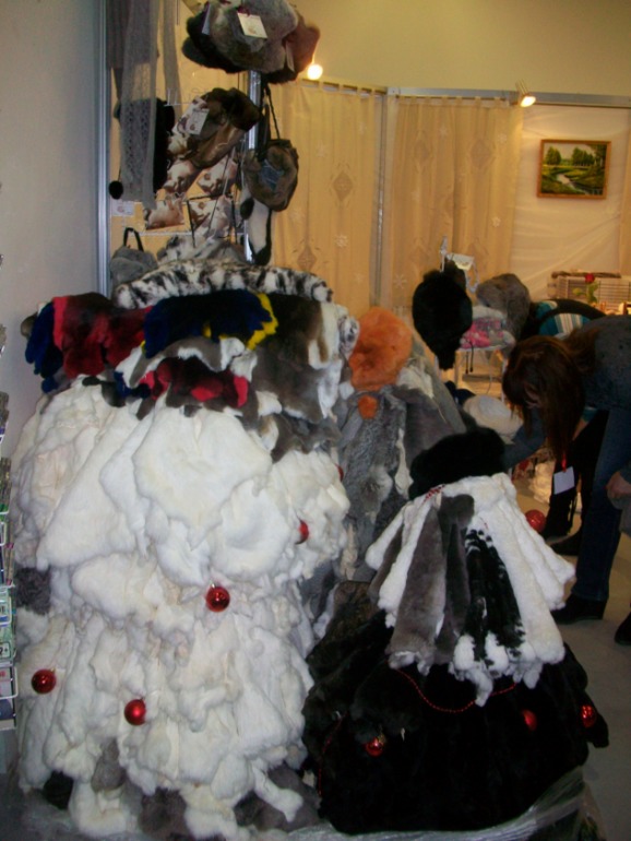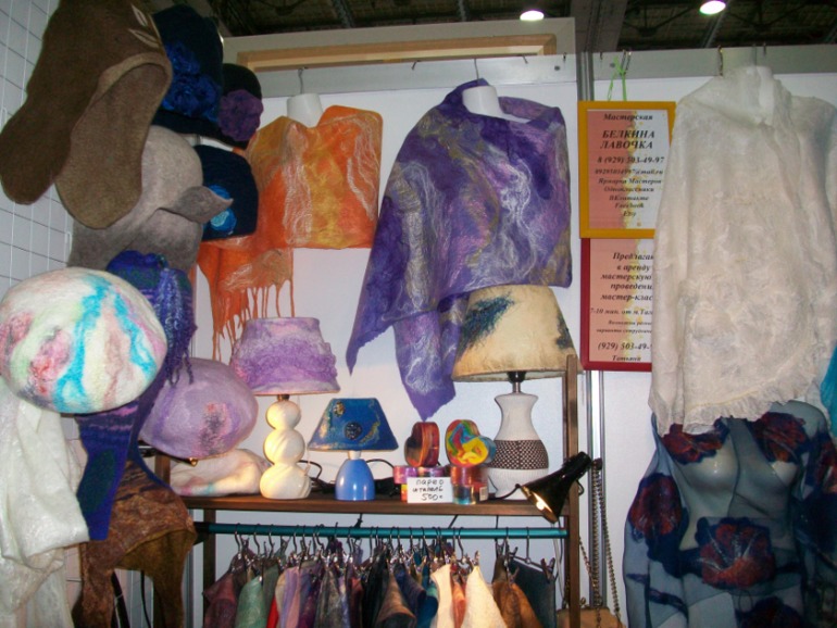 На этом стенде были представлены изделия из кроличьей шерсти.