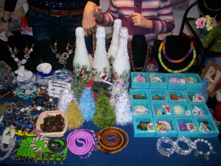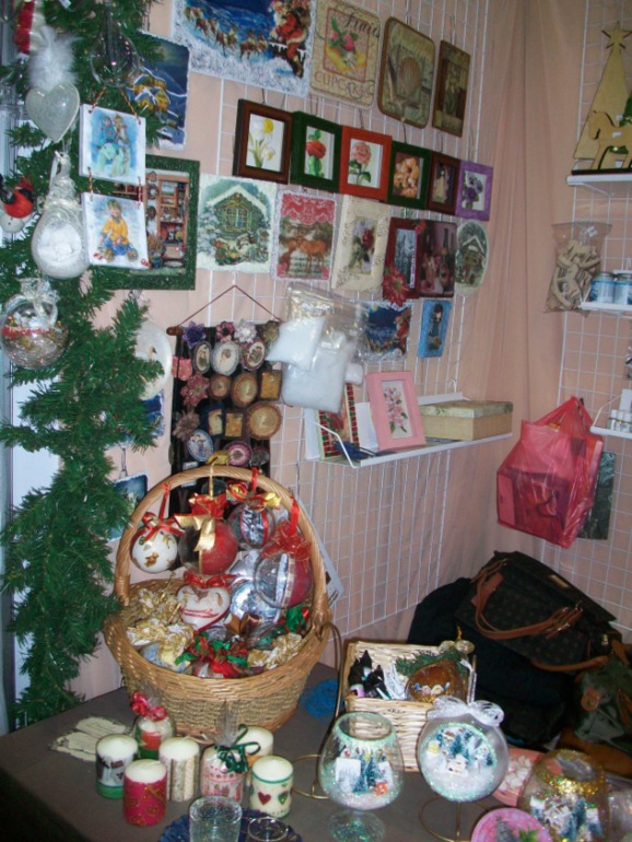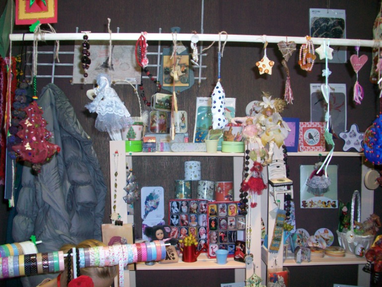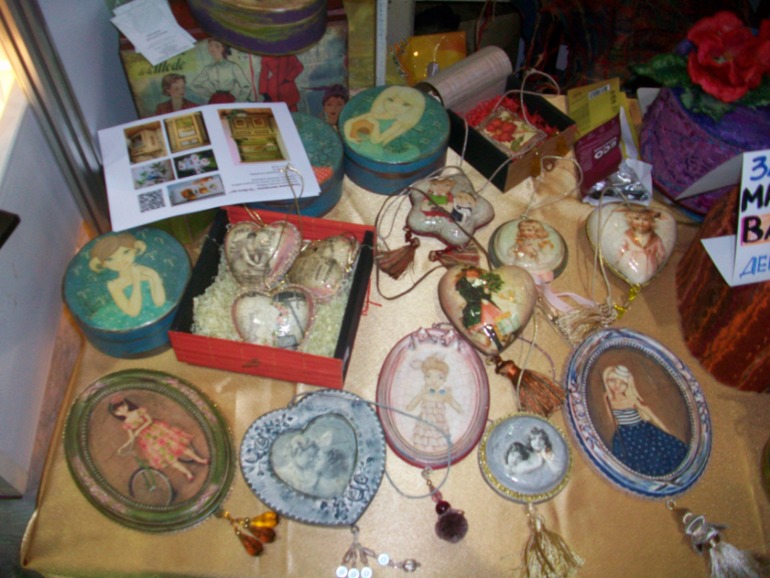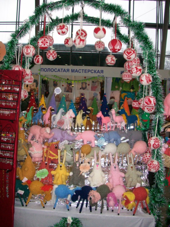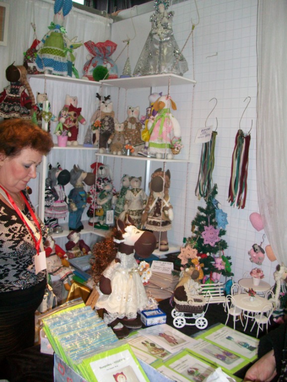 О выставке. Она позиционировалась, как подарки к Новому году. По сути, так оно и было, большинство стендов были представлены готовыми работами и если вам нужны были подарки ручной работы, самого разного жанра и техник исполнения, вы могли преобрести их здесь.