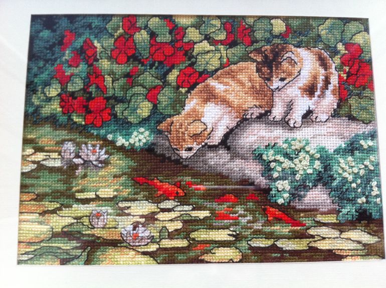 Когда я увидела канву, схему и ключ, накатила паника: 18 канва, полукресты в 5! нитей. КАК? Но теперь понимаю, что в этом фишка Дима, много видов стежков с разным количеством ниток, Котики дались мне не легко, но зато теперь мне ничего не страшно) Хотя на 18 канву пока больше не тянет