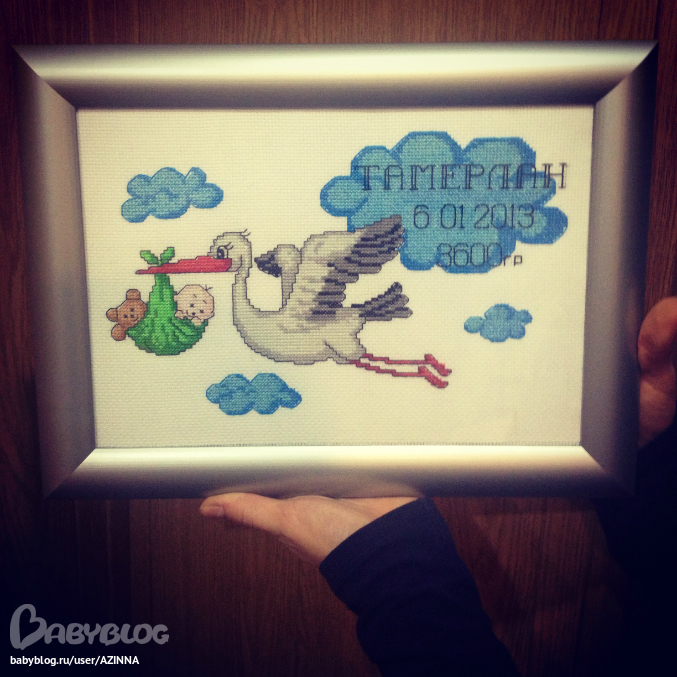 Красотень! А я тоже хочу к рождению сынули метрику вышить. Можно попросить схемку voroninaelvira@mail.ru ?