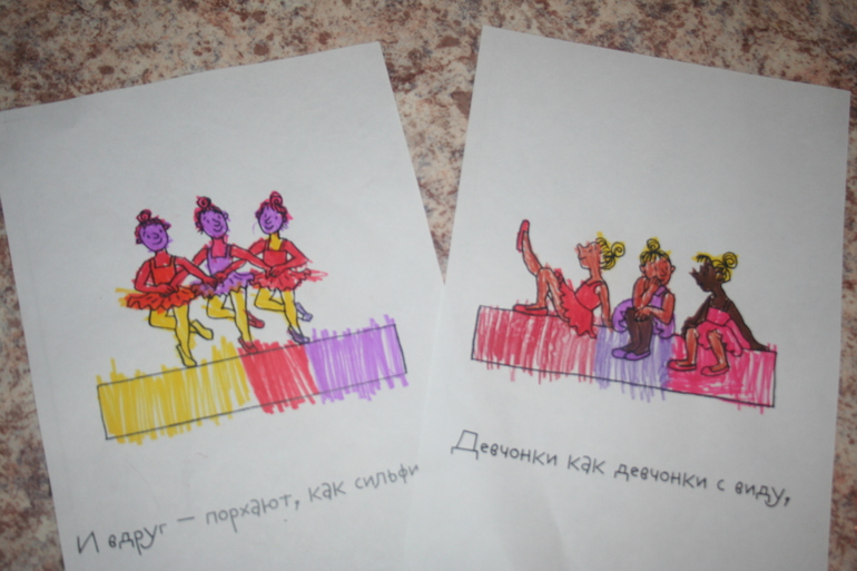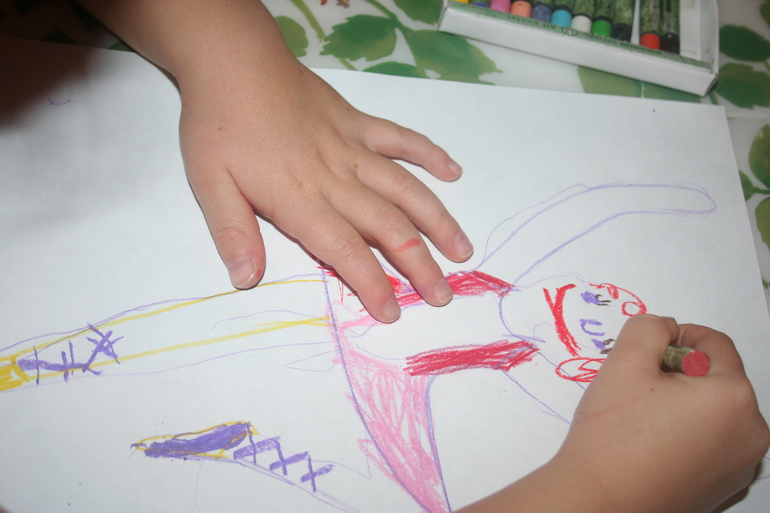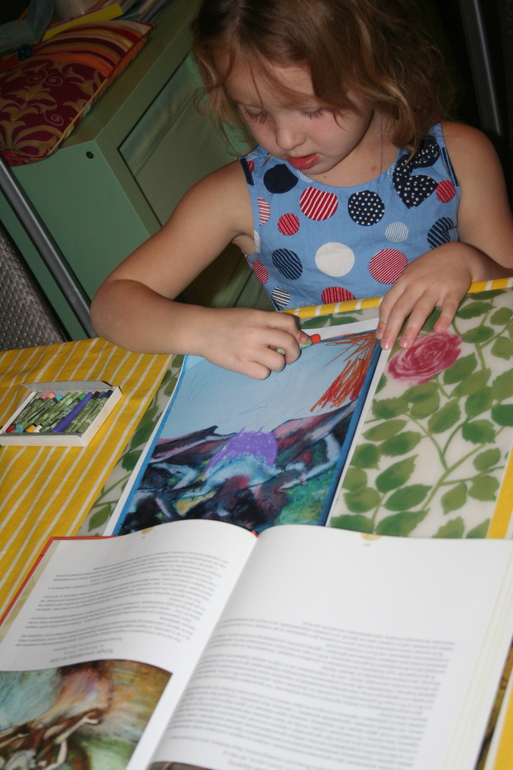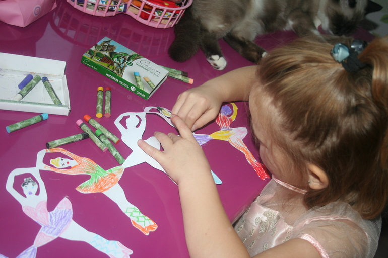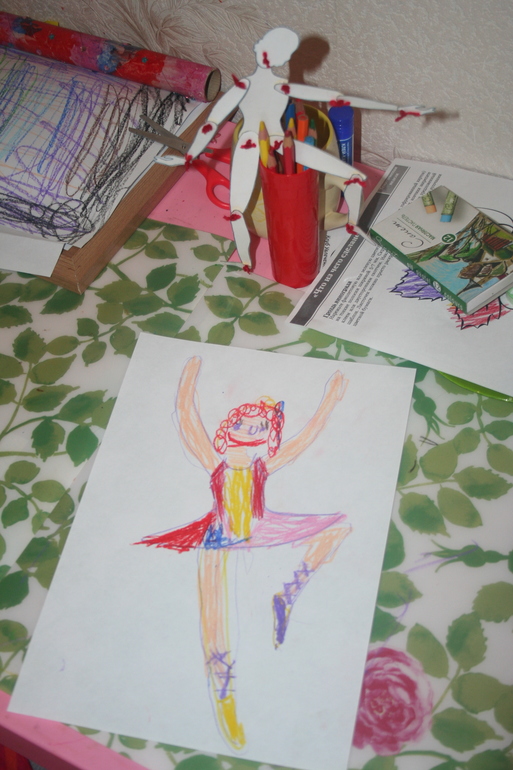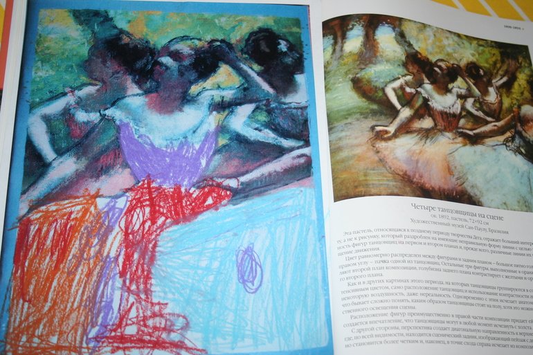 Кстати, рисовали мы преимущественно только любимой Дега масляной пастелью - новым для Камиллы материалом, который по какой-то причине сначала она совсем не оценила, но теперь предпочитает его и карандашам, и краскам.