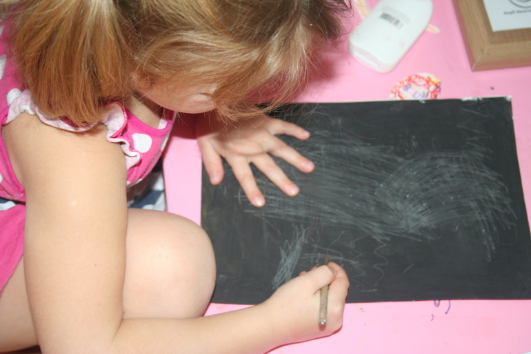 Пытались процарапать красоту, но ничего не вышло, поэтому снова закрасили черным и взялись за занавес.