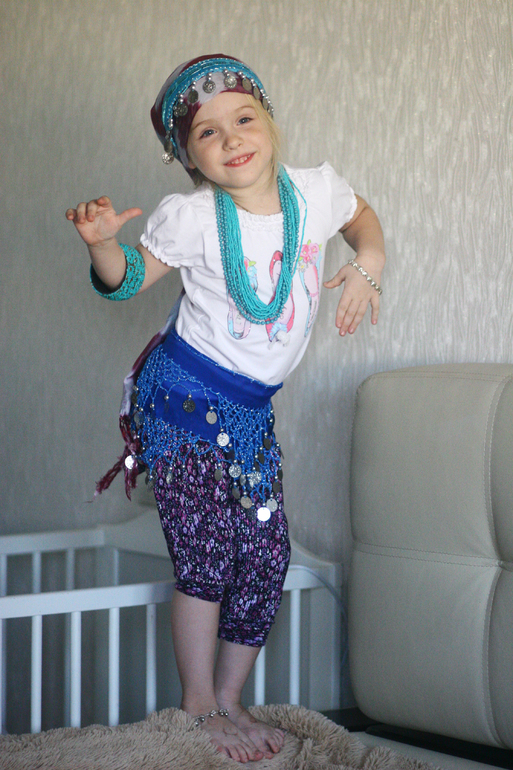 Одевали браслеты, которые нам привезла бабушка из Индии, пояс и ободок с монеткам (турецкий правда, но для танцев отлично подошел))):