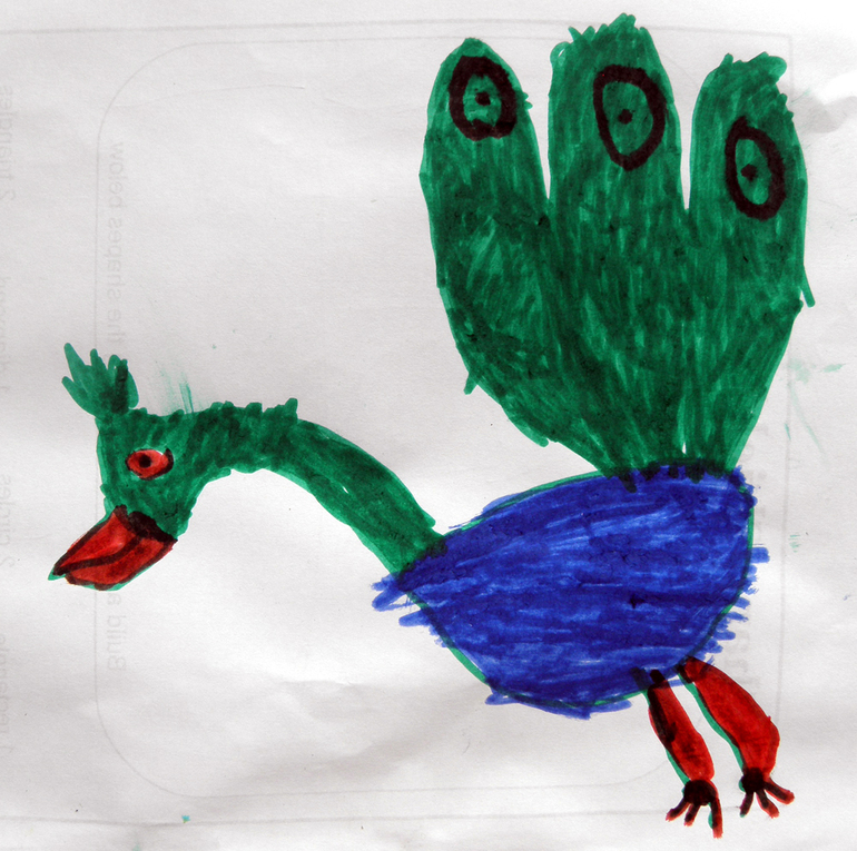 Вот непонятно почему, но Соня пририсовала этому павлину на голове медведя!!! говорит для украшения)))))