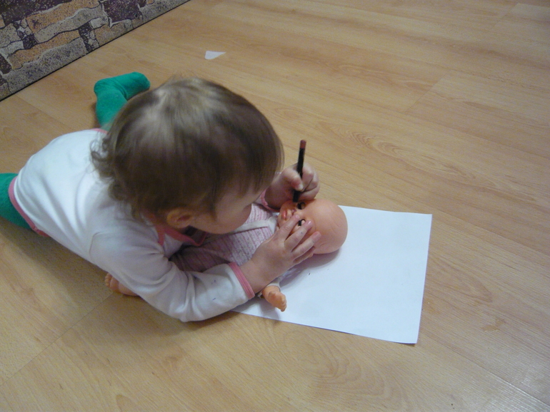 Наше творчество. Сначала веснушки сделали маме (Анфиса не далась), потом кукле нарисовали, ну а потом и девочке.