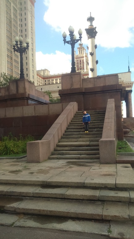 После бассейна с Аркадием и Рони мы отправились к ГЗ МГУ. Перекусили, загуглили нужные координаты (Аркадий был просвещён на тему широты и долготы) и тут приключение началось :) В качестве декораций выступали толпы заселяющихся первачков. Человек 5 просили их сфотографировать на фоне МГУ. Узнала себя десятилетней давности :) Другой элемент декорации - свадьбы. Суббота же. Встретили 6 свадеб. Но первая меня вдохновила больше всего. На свадьбе присутствовала собака! Украшенная белыми ленточками. Вот так вот. Сфоткать постеснялась.Но зрелище было супер :)