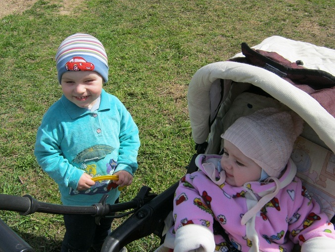 С двоюродным братом Антоном (2 года 10 месяцев) на прогулке