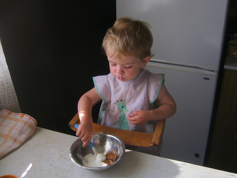 Полина с удовольствием готовила) Засыпала, мешала и командовала)