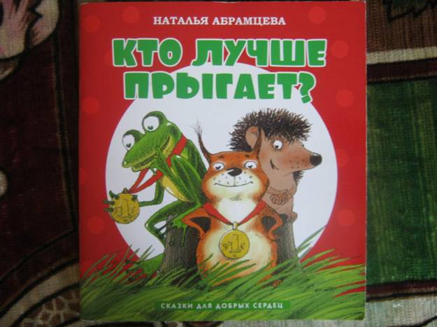 Кто лучше прыгает? Тоненькая книжка, качество хорошее, иллюстрации тоже. Просто книга-выручалка в дороге, перед сном. Никогда не отказывается ее почитать, и сама листает и даже рассказывает по книге - будто читает)