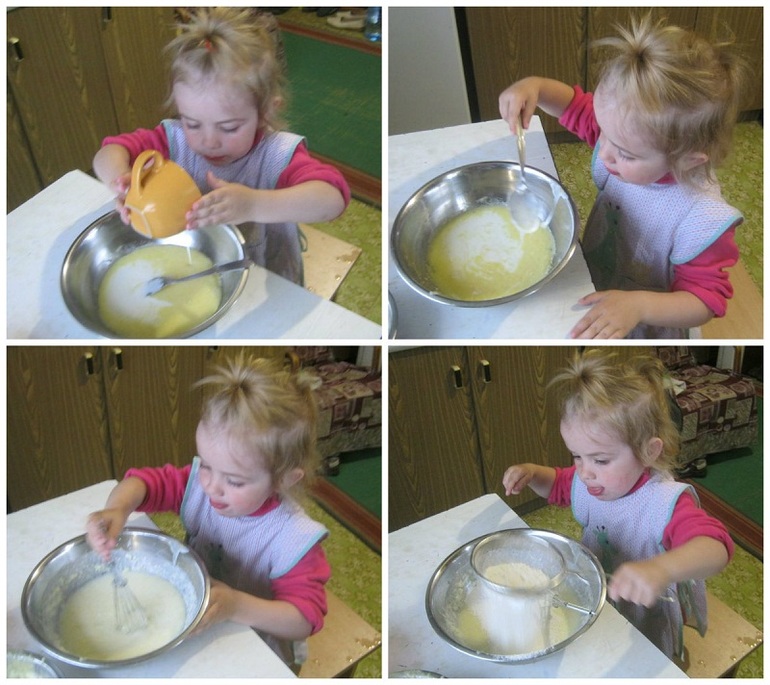 Кулинарный ЧетвергЧто-то мы вяло как-то кулинарим. То диета, то лето) Но вот решились сделать маффины. Полина меня удивила, она все хотела делать сама, а наливала тесто в формочки только она. Даже муку просеяла!