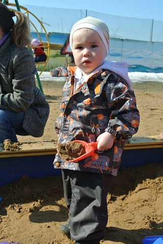 А вот почему то на площадке пока не хочет в песочницу, видимо - лужи - это новое открытие и они интереснее )), хотя осенью всегда в центе всех песочниц тусила ))) ну, мне и проще - не совсем уделанную ее домой тащить )))