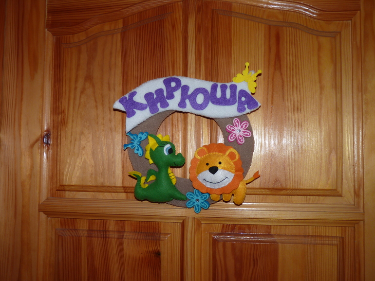 Вход в нашу комнату сторожат львенок и дракончик (Кирюша по гороскопу лев и дракон)