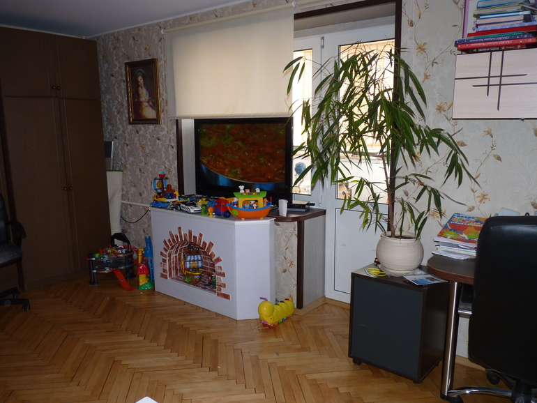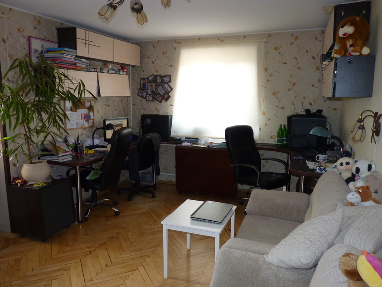 Основное время мы все проводим в большой комнате, там все игрушки Кирюшки, книжки, наши компьютеры, рабочие столы родителей и все прочее)
