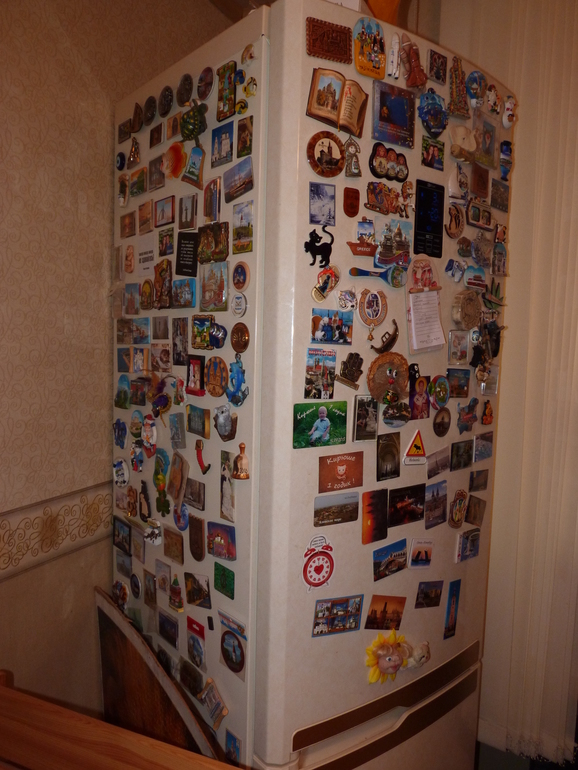 Еще интересное место в нашей квартире - это холодильник)) он увешан еще одним моих хобби - коллекционированием магнитиков)) Сейчас магнитиков стало чуть меньше, Кирюша их немного проредил, несколько разбились((