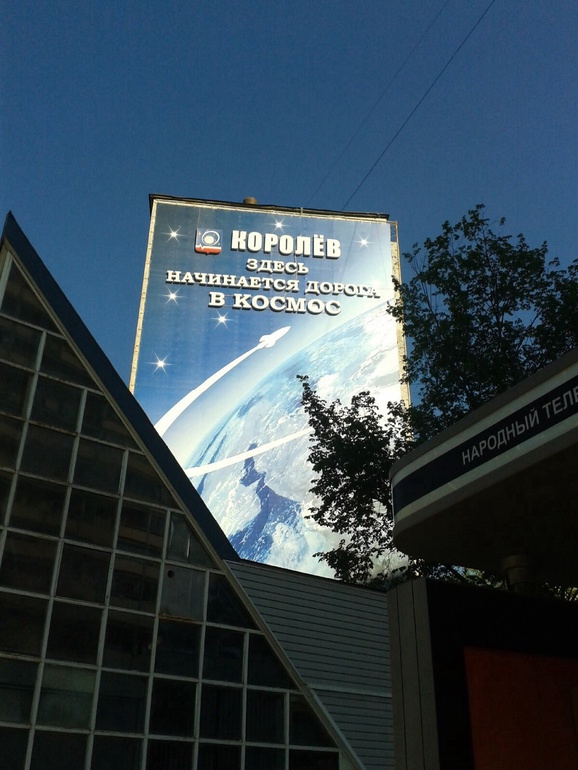 С 12 апреля 2001 года нашему городу присвоено звание - наукоград. Наш город является (неофициально) космической столицей России, здесь находится Центр управления полетами (ЦУП) и большинство градообразующих предприятий связано с космосом (РКК Энергия (здесь несколько лет работала мама и сейчас работает папа), ЦНИИМАШ (работали бабушка и дедушка, который даже ездил несколько раз в полевые экспедиции для встречи космонавтов), и т.д.). В связи с этим в городе очень много памятников связаных с космосом, при въезде в город всех встречает ракета (фотография старая, сейчас там немного по-другому)