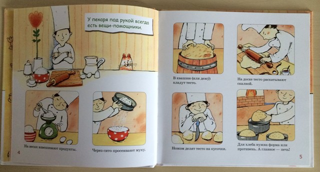 1. Начну с самого, на мой взгляд, важного! С хлеба! Ведь, как известно, хлеб - всему голова! Процесс его выпечки не так прост и лучше всего его проиллюстрировала Диана Лапшина в книге Инны Карповой "Пекарь" (серия "Кем быть?")