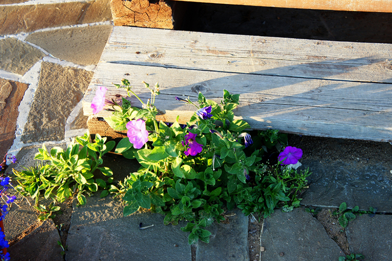 Весь первый день мы разглядывали дом и участок.Цветы клумбами сами растут из щели в дорожке))) Я тоже так хочу!!! А то выращиваешь их через рассаду, поливаешь, а все равно куций кустик...