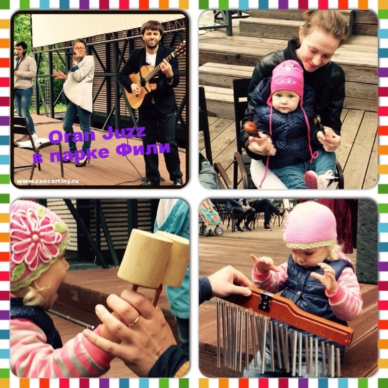 А начали мы день с концерта для малышни проекта "Концертини", некоторые приезжали даже с грудничками в колясках. Группа не только поет, но и дала деткам поиграть на инструментах, некоторые мне и самой были интересны. Мы с мужем расслабились, вспомнили бездетную пору (я бы на такую группу и во взрослом составе вечером сходила), а наши девочки немного потанцевали, поиграли, но, главное - там столько места, что все дети могли свободно перемещаться и никому не мешали.
