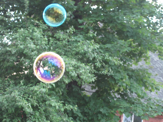 Инна прислала нам посылочку, в которой была замечательная игрушка - штуковина для пускания пузырей. Мы, конечно устроили настоящий праздничный салют.