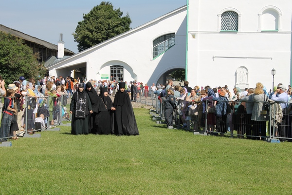 Выносят икону княгини Ольги, написанную легендарным наместником Печерского монастыря архимандритом Алипием.