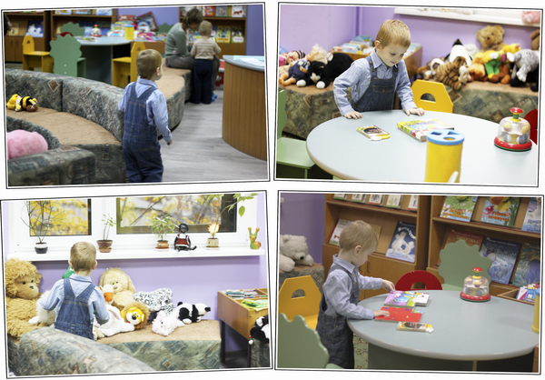 Какое это чудное место - диванчики-пуфики, столики-шкафчики. И, главное, как там много игрушек, просто море самых разнообразных игрушек и ярких красочных книжек!