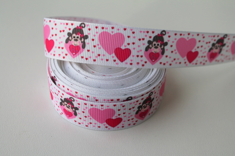 50. Репсовая лента " Обезьянка с сердечками", ширина 22 мм, в наличии 10 ярдов, 1 ярд= 91 см= 30 руб