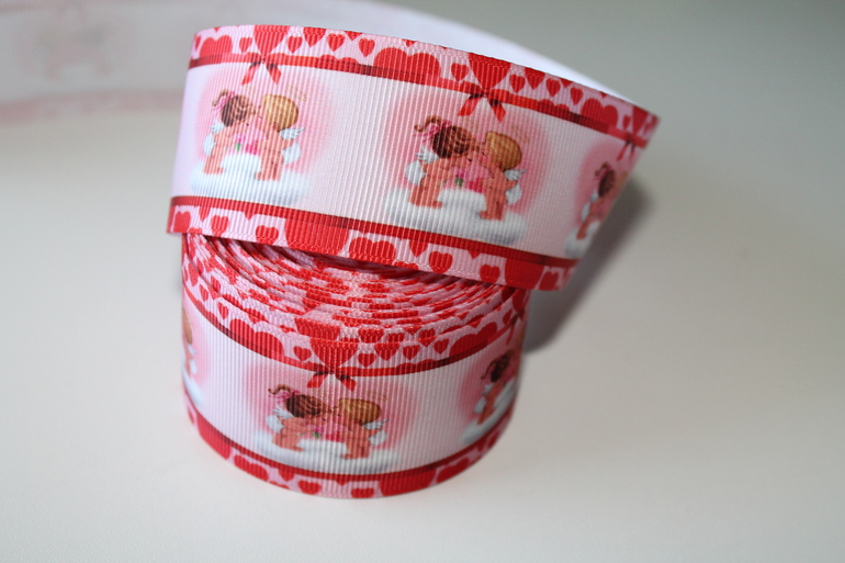 46. Репсовая лента "ангелочки", ширина 40 мм, в наличии 10 ярдов, 1 ярд=91см=35 руб