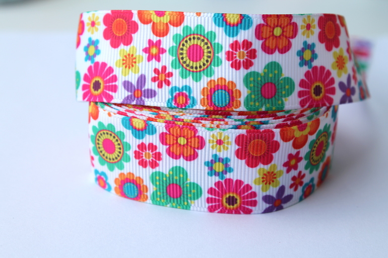 45. Репсовая лента "Яркие цветы", в наличии 3 ярдов, 1 ярд=91см=30 руб