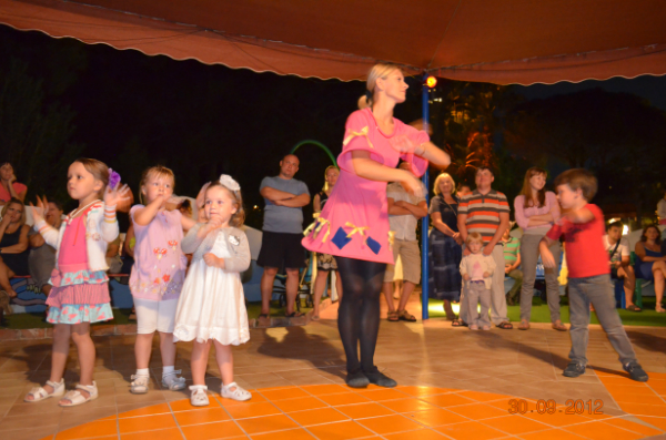 Территория огромная, очень ухоженная и очень красивая! Миниклуб прекрасный. Детки без родителей с 4 лет. Мы шли с родителем)))))) Занимаются весь день с 10 до 12:30 и с 15 до 18. В 21 минидиско. Моя в любилась в минидиско так, что пропустить было нельзя. Потом шли на шоу программы-ей тоже очень нравилось, я даже не ожидала. Мы еще ни разу до этого не ходили на такие мероприятия. Я думала что она просто не усидит.