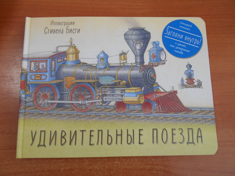 "Удивительные поезда" это третья книга из серии книг с окошками Стивена Бисти.