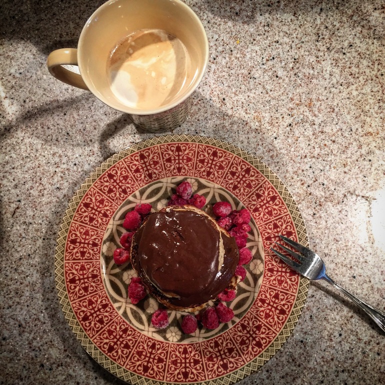А это творожное-банановые оладьи с шоколадно-ореховой пастой. Паста без сахара и искусственных добавок!