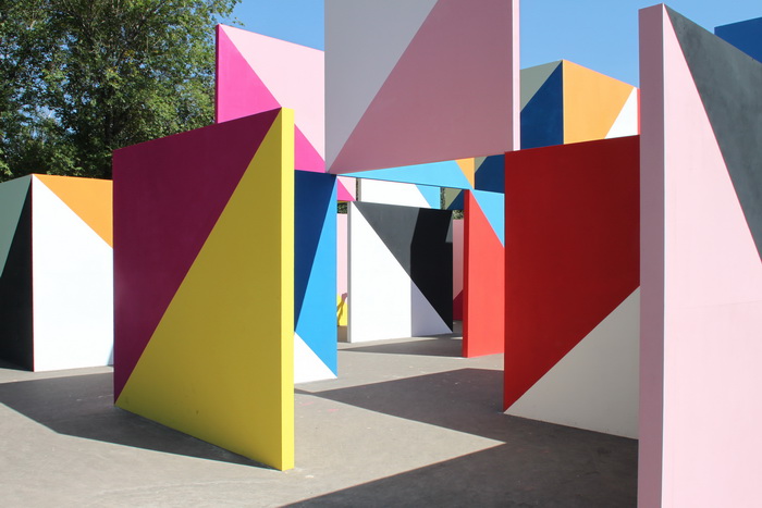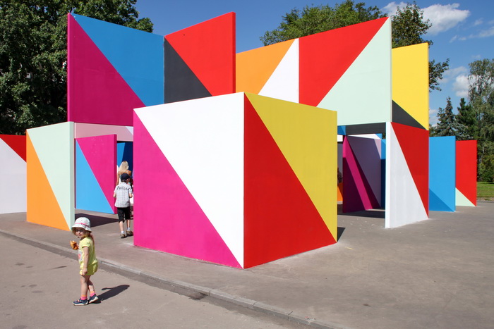А рядом с медиакубом есть классный паблик-арт-объект, откуда детей вытащить было практически не реально. Это лабиринт. Носились, орали, лезли на стены, искали друг друга.