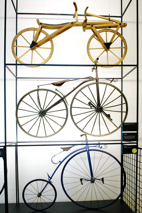 Сразу при входе один из первых великов, еще с деревянными ободами для колёс: