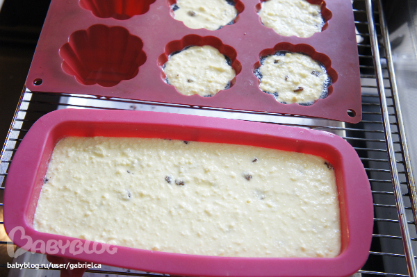 у меня из этого количества творога получились еще и кексики 4 шт. Ставим в духовку при 170 гр, примерно на час - зависит все от формы , но печь его нужно при не большой температуре долго