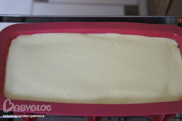Как пройдет минут 20 после его посадки в духовку - делаем заливку : сметану взбиваем с яйцом и сахаром , достаем сырник и заливаем сметаной,
