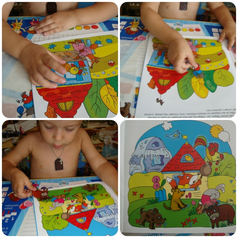 Подбирали героев сказки (спасибо сестре - дали нам на время эту игру и пазлы). Но терпения у сына на све сказки не хватило.