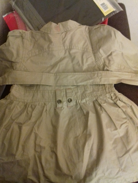 В ИДЕАЛЕ!Носили всего пару раз.Привезли из Щвецарии.Необычно красивый и с неопромокаемый материал.Смотрится очень нежно и стильно!Чистый и без дефектов.Надо только гладить.Есть ремешок.Размер 104 см но можно носить с 2.5 года.В подарок отдам еще пару вещей в очень хорошем сост.