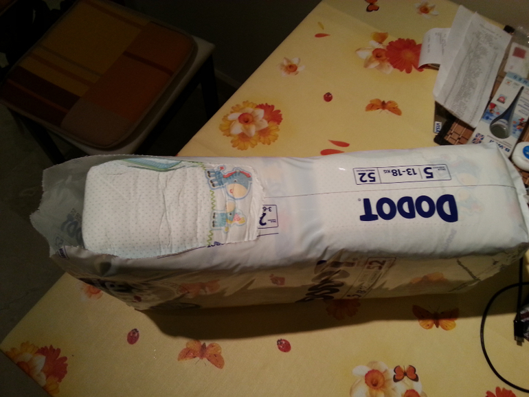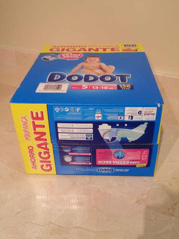 На них как раз была скидка. И мы купили 156 шт. за 33.99 €, хотя 52 шт. стоили 20€. Вышло дешевле , чем Pampers в Москве. Дома открываю коробку, а там...что бы вы думали?!...всё те же герои и логотип сердечком. В общем, Pampers в Испании есть. Только называется Dodot)))