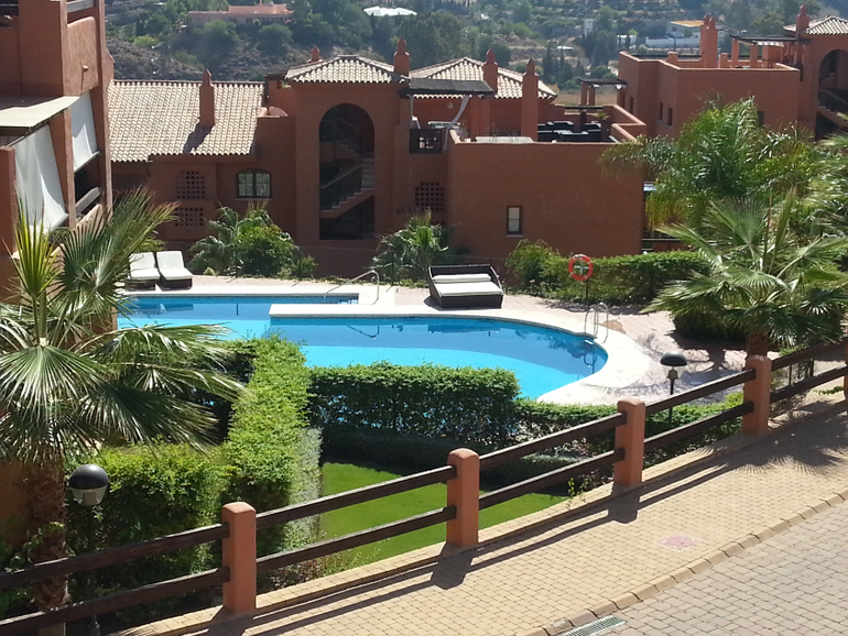 И мы на закрытой территории прекрасного жилого комплекса с четырьмя бассейнами под открытым небом, одним лягушатником, тремя закрытыми бассейнами, тренажерным залом и сауной. Разумеется, все бесплатно.