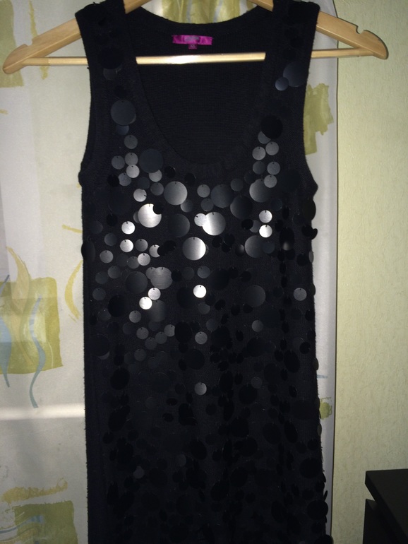 Цвет реально темно-синий. Строгое и стильное. Возле горловины по канту расшито стеклярусом в тон. Внизу на уголках юбочки фурнитура золотого цвета.