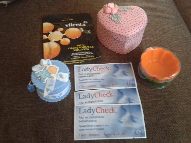 Ещё меня Ирина порадовала замечательной шкатулочкой , маской для лица , формочки для кексов ( теперь есть повод порадовать себя сладеньким) .Долго рассматривала голубенькую коробочку , а когда открыла увидела шоколадные вкусняшки !!! Ну и конечно счастливые тесты !!!