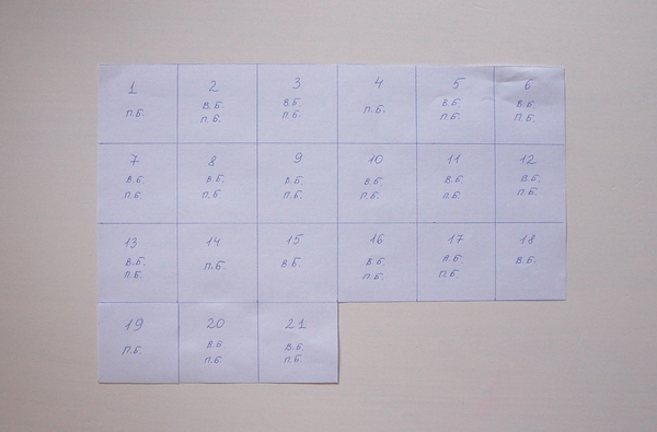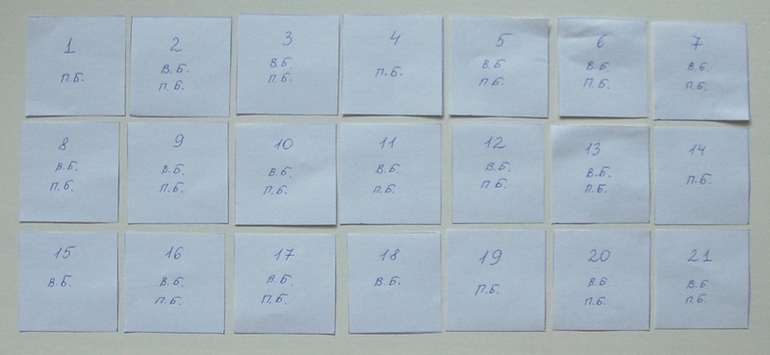 Количество участников - 21. Около каждого номера сделала пометку, какую книгу хочет каждый участник: В.Б. - Везучий Борька, П.Б. - поющие булочки.