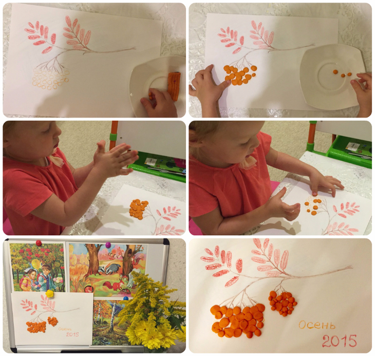 Я катала, она прикрепляла. Да, аккуратно начала все делать и рисует и лепит.